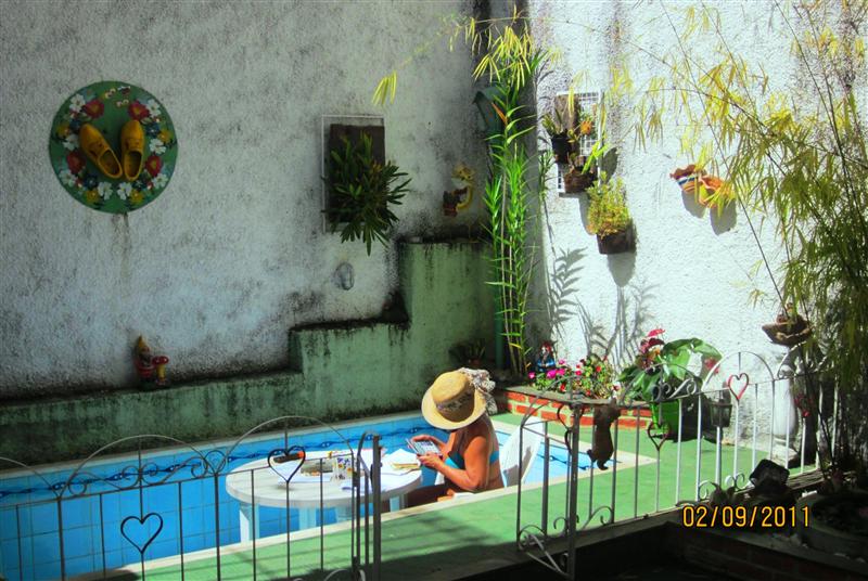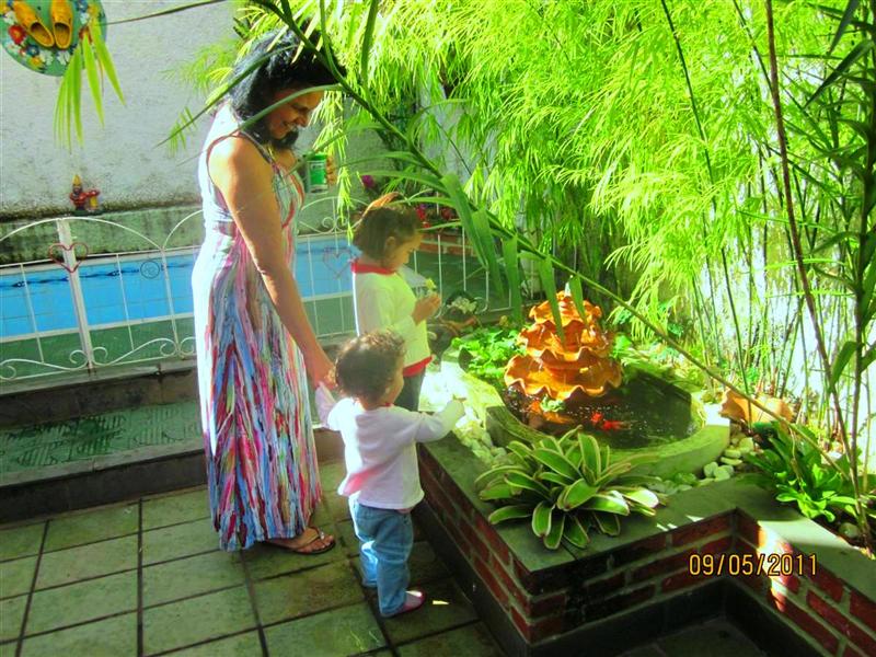 Daar is het ook waar ik nog wat handenarbeid doe, zoals het visvijvertje schoonmaken of de bromelia’s uitplanten, de planten wateren of het onkruid verwijderen.