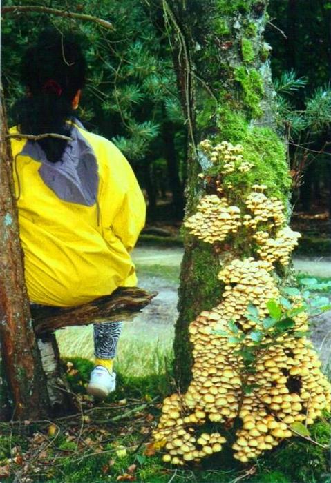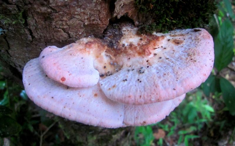 Bijna bloemvormend op een omgevallen boom (links) en tussen van alles door.