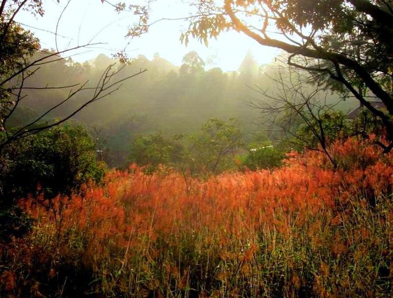 De speciale kleur van onze ‘capim gordura’( = vetgrassen) bij ons Hemeltje in het eerste zonlicht.