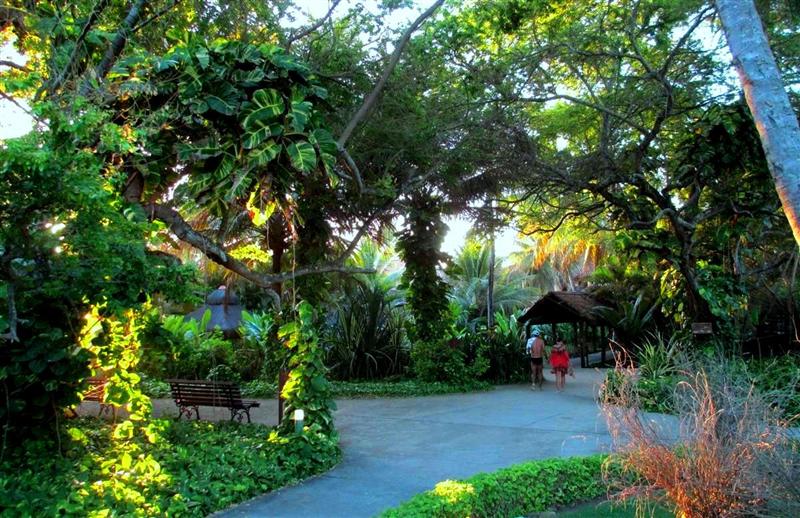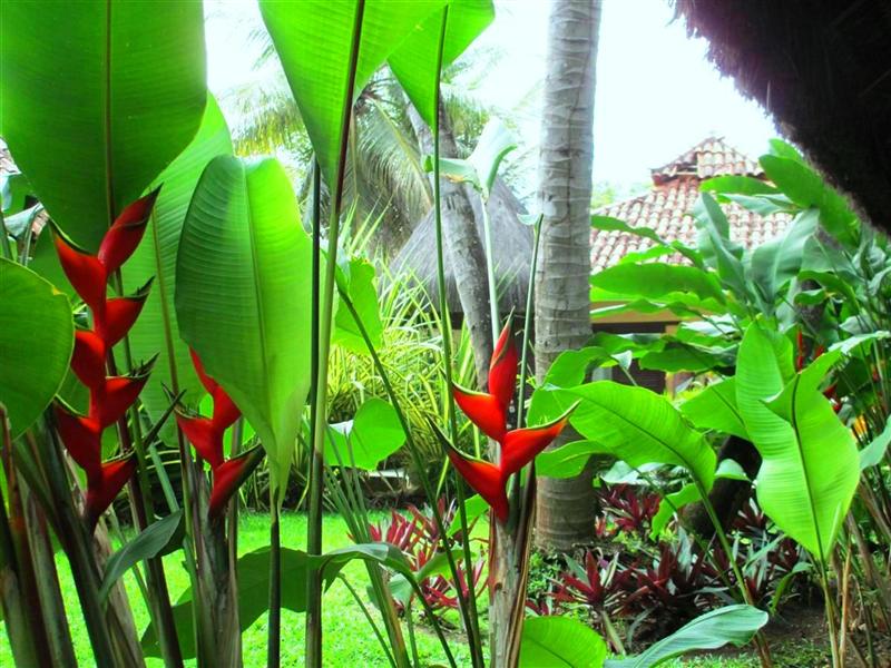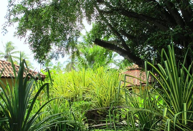 Aan de strandkant van het centrale wandelpad kom je in een grote, mooi aangelegde tuin met veel groen van de streek, kleine zwembaden met cascades, rieten kiosken, zitjes, ligstoelen, de bar en het restaurant( (met zicht op de oceaan). Ook staan aan de zijkant een paar bungalows met een direct zicht op de zee, waarvoor de eigenaar natuurlijk het dubbele in prijs vraagt.