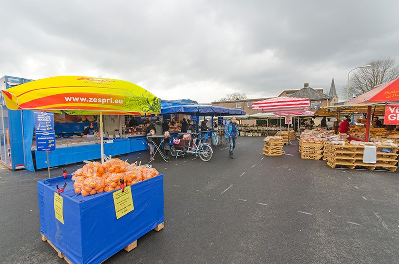 De zaterdagmarkt had vandaag de primeur op de nieuwe (tijdelijke) plek langs de Brinklaan en het Raterplein, omdat er reeds begonnen is om het marktplein bouwklaar te krijgen voor de bouw van de nieuwe Marktwand.
