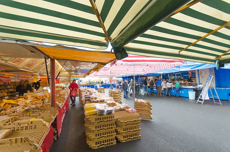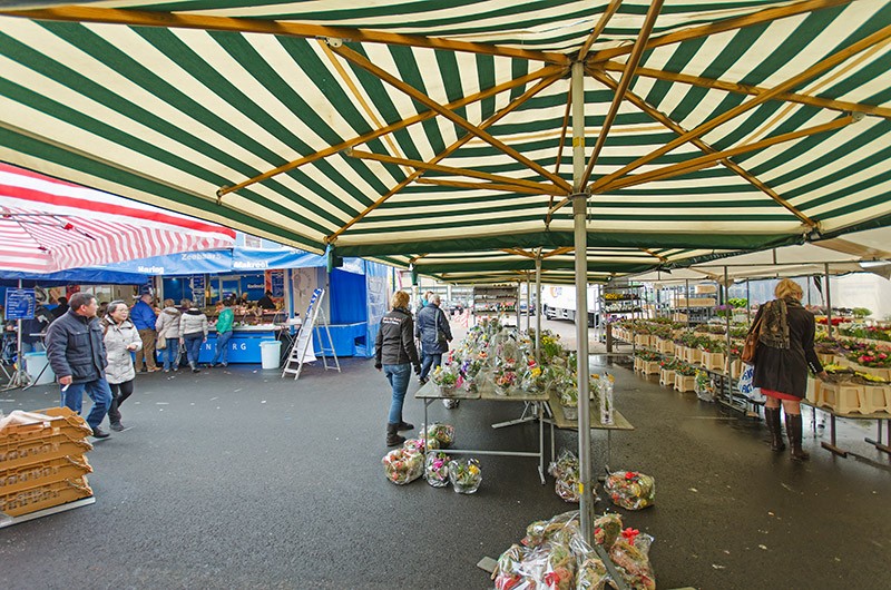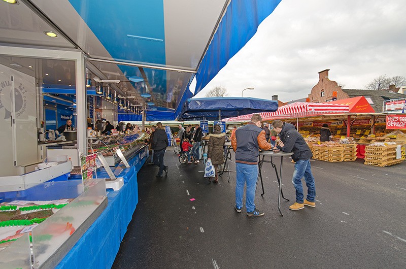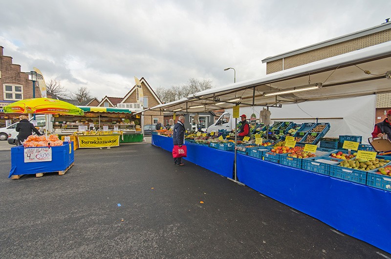 Wat het eerste bij mij opkwam bij het benaderen van de deze nieuwe plek, wat een knusse gezellige markt is dit, veel gezelliger ook als de oude plek op het marktplein. Bovendien staat men hier ook veel meer beschut tussen de huizen en winkelpanden. Bij een van de kramen had ik een kort gesprek en als het aan hun ligt, dan blijft de markt voorgoed op deze plek, mede ook vanwege de indrukken die ik hierboven al heb aangestipt. Wie weet wat de toekomst nog brengt. Feit is natuurlijk wel, dat de woensdagmarkt groter van omvang is en een groot gedeelte van de parkeerplaats Ratelplein in beslag zal nemen. Vooral in de zomer kan dat een probleem worden, want juist op die marktdag is het dan vaak een probleem om een parkeerplaats te vinden.