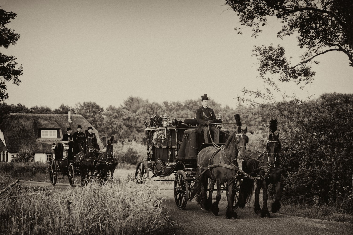 Via de prachtige landelijke weggetjes in Emst en Zuuk reden de koetsen naar De Middenstip Epe voor de condoleance. 's Avonds via ongeveer dezelfde route weer terug naar huis.