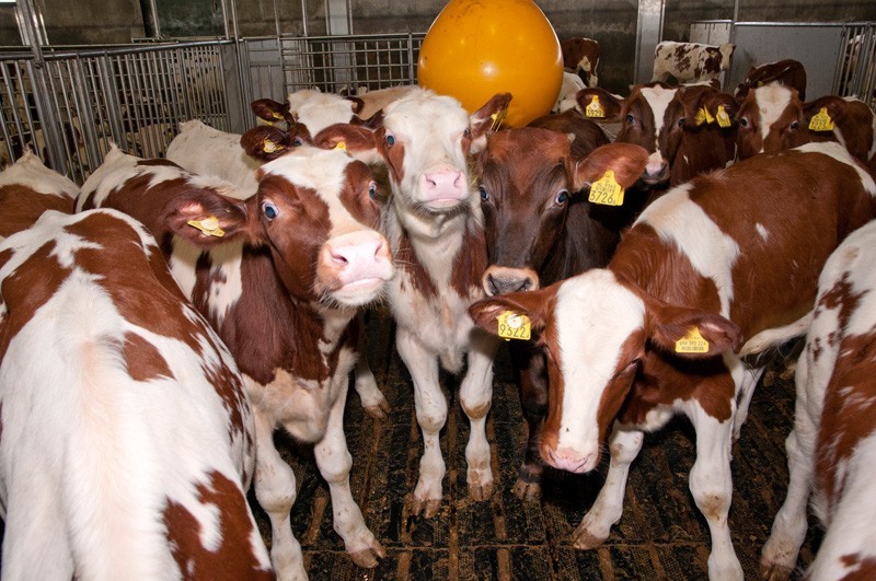 Aan de ene kant zwart-bonte kalveren en aan de andere kant de rood-bonte kalveren.