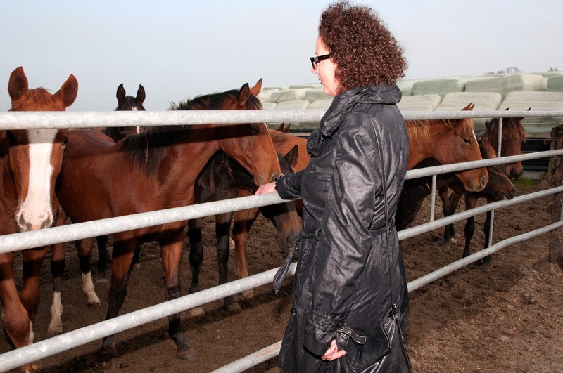 Christiaan Keizer vertelt: ,,We hebben hier zo'n 225 paarden staan. De eerste veulens die gespend zijn (weggehaald van de moeder), zijn hier ongeveer zo'n maand of twee geleden gekomen en deze die hier staan, zijn nu vijf á zes maanden oud. Ze worden ingedeeld op geslacht, leeftijd en dominantie. Voordeel van deze stallen is, dat ze aan beide kanten kunnen eten. Je zult dit ook zien bij de andere stallen".