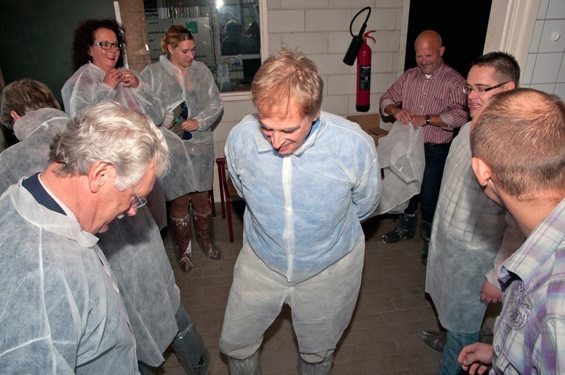 Daarna volgt er een verkleedpartij, voordat men de stallen in gaat, wat onder de veiligheidsnormen valt.