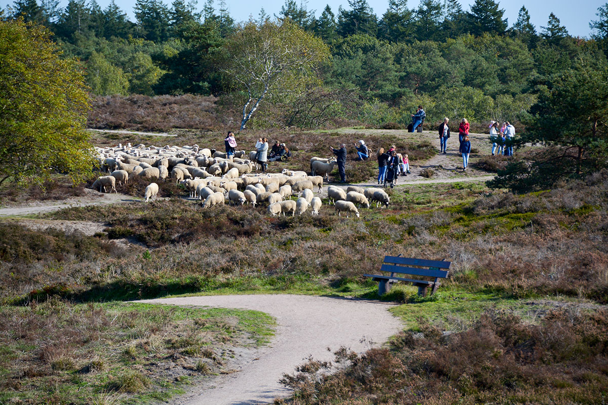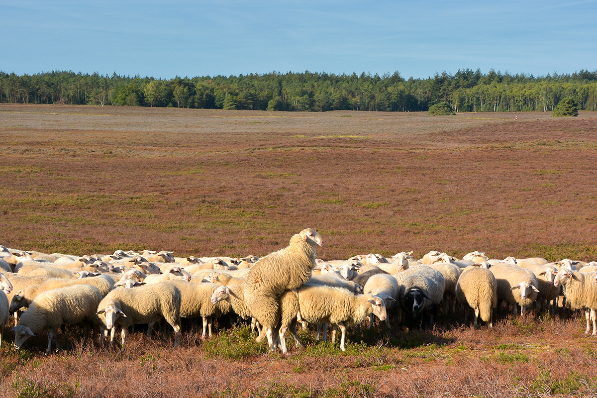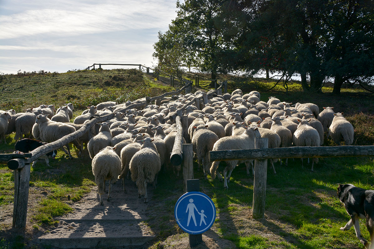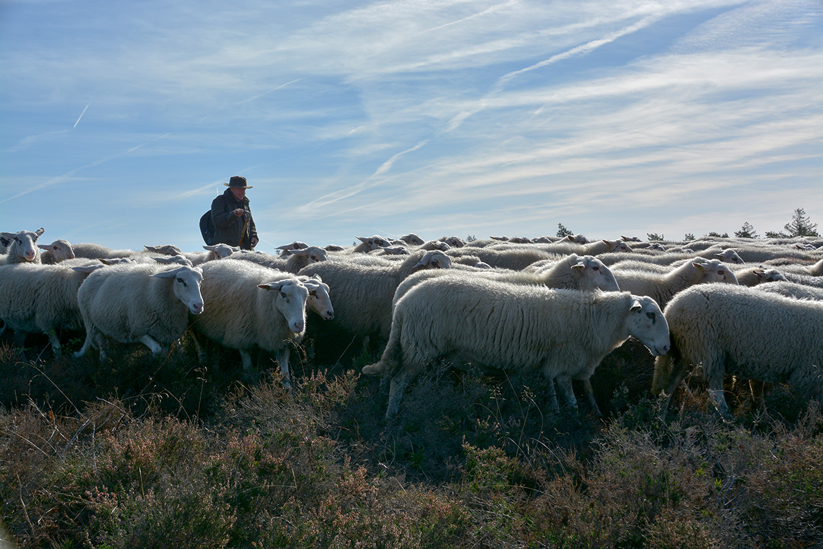 Gisteren en vandaag werd het Beleefweekend van het IVN in de gemeenten Heerde en Hattem gehouden. Belangstellenden konden meedoen aan allerlei activiteiten, waaronder een ochtendwandeling met de schaapskudde Epe-Heerde. Herder Fred Mekelenkamp uit Emst trok er met de 140 ooien en een handvol rammen tellende kudde, de schaapshonden Lad en Tim en zo’n twintig belangstellenden op uit. Ik liep ook mee, want het was niet alleen perfect weer voor een heerlijke wandeling, maar ook om foto’s te maken. De schaapskudde op de zonovergoten Renderklippen is nu eenmaal een dankbaar onderwerp om te fotograferen.