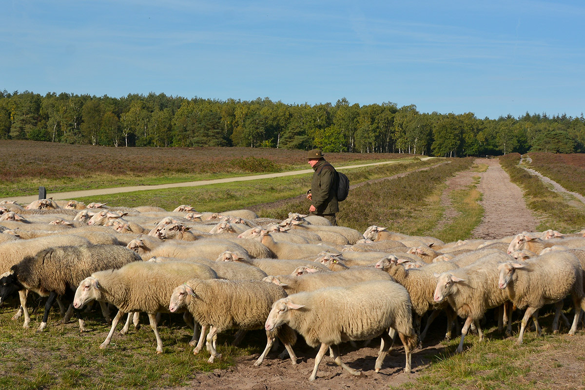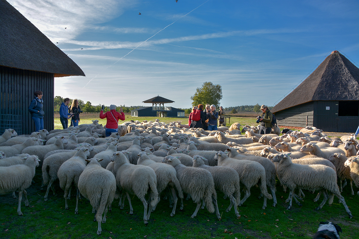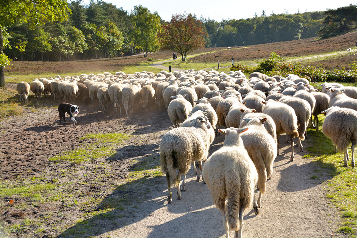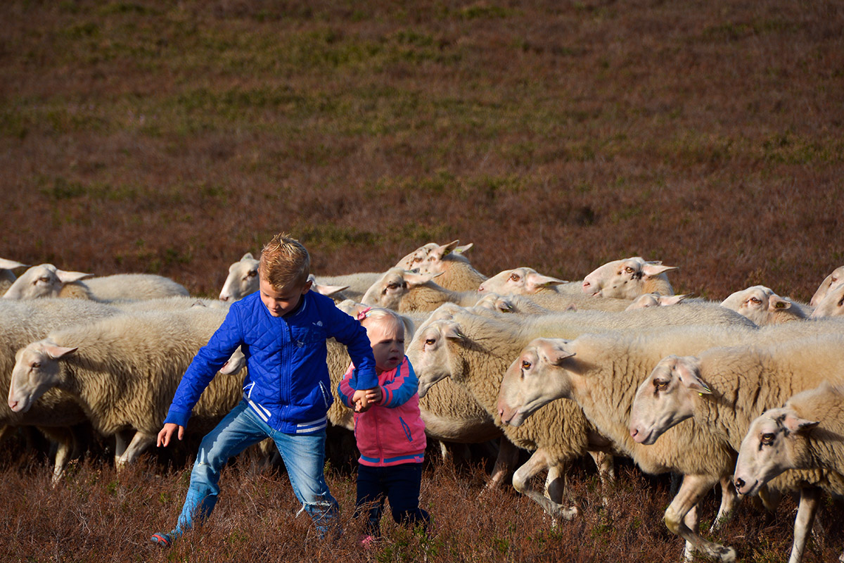 Gisteren en vandaag werd het Beleefweekend van het IVN in de gemeenten Heerde en Hattem gehouden. Belangstellenden konden meedoen aan allerlei activiteiten, waaronder een ochtendwandeling met de schaapskudde Epe-Heerde. Herder Fred Mekelenkamp uit Emst trok er met de 140 ooien en een handvol rammen tellende kudde, de schaapshonden Lad en Tim en zo’n twintig belangstellenden op uit. Ik liep ook mee, want het was niet alleen perfect weer voor een heerlijke wandeling, maar ook om foto’s te maken. De schaapskudde op de zonovergoten Renderklippen is nu eenmaal een dankbaar onderwerp om te fotograferen.