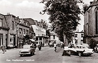 De eerste foto geeft u een blik de Hoofdstraat in, met die mooie leilinden aan de linkerkant van de straat. Deze foto is onlangs gemaakt en zoals u kunt zien, staan de bomen aan de rechterkant van de weg er ook nog en uiteraard de Grote Kerk, vergeleken met de oude foto uit de vorige eeuw. Aan de rechterkant is duidelijk wel het een en ander veranderd.