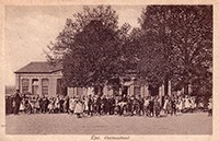 De eerste foto die ik onlangs heb gemaakt, toont het doorkijkje naar de parkeerplaats bij onder andere het VVV kantoor. Op de tweede foto, ver uit de vorige eeuw ziet u de Dorpsschool met een aantal leerlingen poserend voor een fotograaf.