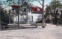 Op de eerst foto, andermaal vorig jaar gemaakt, staat de RABO-Bank op de hoek Hoofdstraat en de Prinses Julianalaan. Op de tweede foto, ook weer ver uit de vorige eeuw toen de Hoofdstraat nog Dorpstraat heette, ziet u een ingekleurde zwart-wit foto van Villa Helena. Een villa zoals er in die tijd en later ook nog zovelen waren, maar allemaal verdwenen als sneeuw voor de zon.