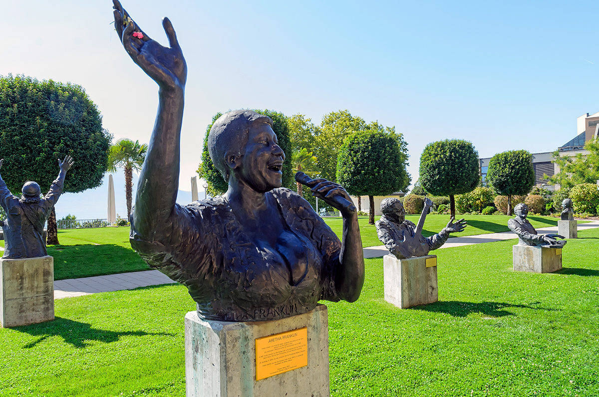 Wie ooit eens in Montreux is geweest, heeft vast wel de beeldentuin bezocht waar beelden van een aantal beroemde Jazz muzikanten staan.