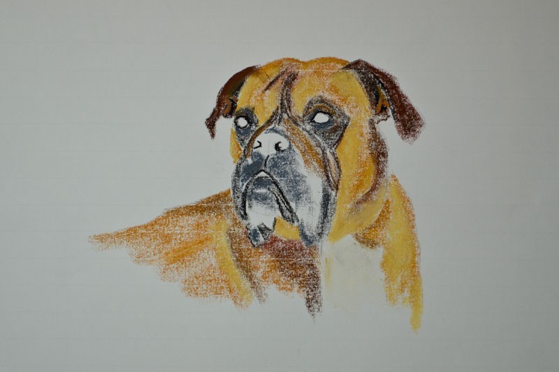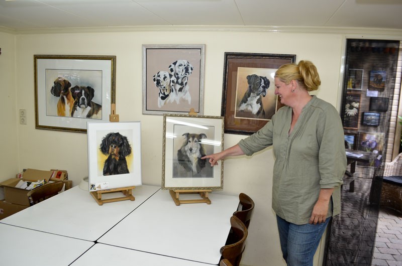 De hondenportretten maakt ze aan de hand van foto’s, die ze het liefst zelf maakt, omdat ze dan een goed beeld van het karakter van het dier krijgt en dat kan fotograferen zoals ze het wil tekenen. ,,Hoe beter de foto, hoe beter het resultaat. Maar er komen hier ook wel mensen die een portret van hun overleden dier willen laten maken en alleen een heel klein fotootje hebben.’’ Maar ook daar kan ze zich meestal wel mee redden. ,,Sommige mensen worden heel emotioneel als ze het portret komen halen. Mensen van wie de hond is overleden, pinken nog wel eens een traantje weg.’’