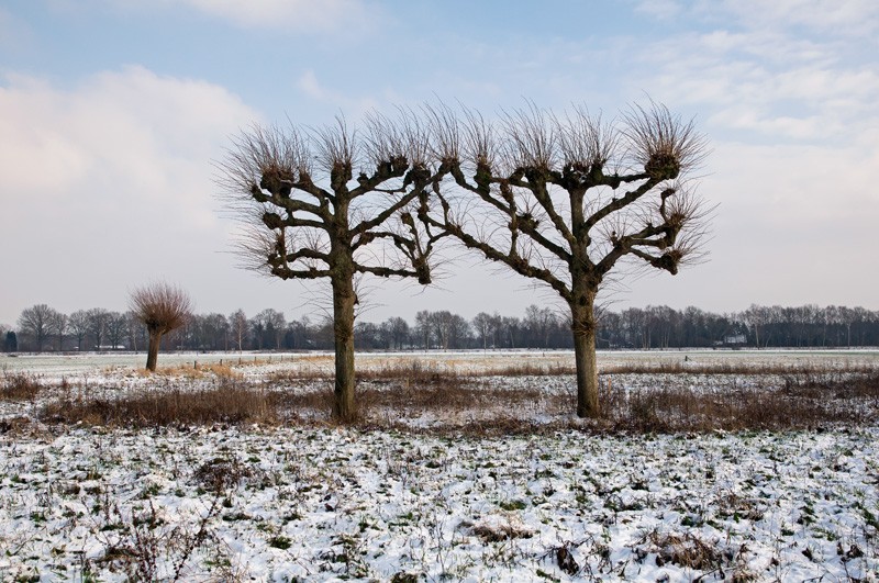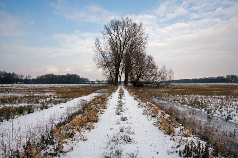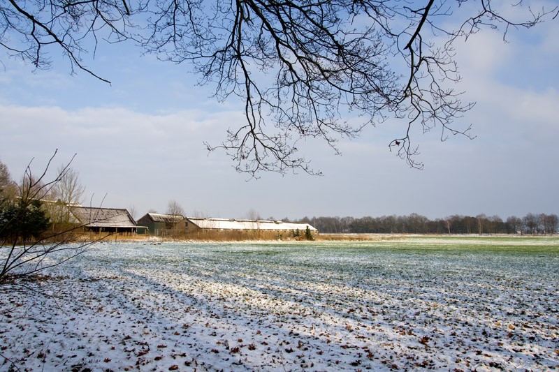 Het gehele Vossenbroek heeft op mij een bepaalde aantrekkingskracht, ten eerste omdat het een vreemd gebied is, doorsneden met de snelweg A50 en ten tweede omdat het landschap daar zo aan het veranderen is. Het is nog niet zo lang geleden dat zowel Vossenbroek- West alsmede Oost nog een zandvlakte was na de afplag werkzaamheden. Als u er toen ook was en nu weer een bezoek brengt aan dit gebied, dan ervaart u zelf ook wat ik bedoel. Wat is de wereld toch mooi in de sneeuw. Af en toe was het er wel koud op die nog kale vlakte. Nu foto's van Vossenbroek-Oost in de sneeuw en in de volgende series besteed ik aandacht aan de Tongerense heide en het Kievitsveld in de sneeuw.