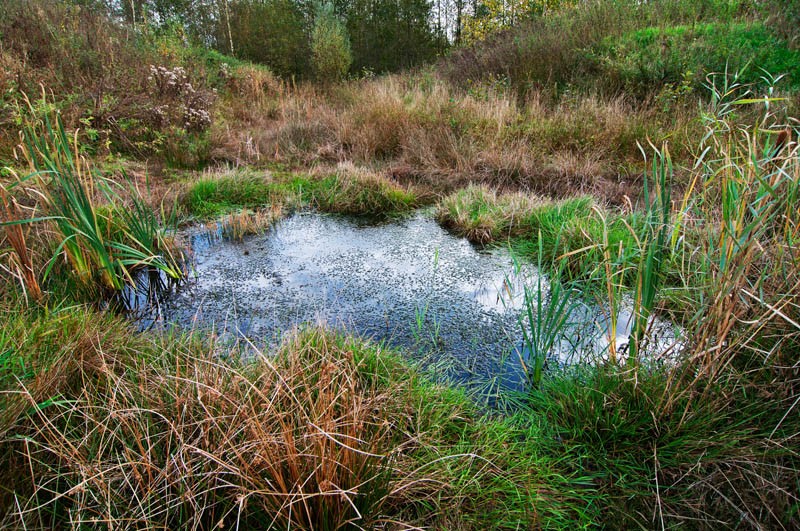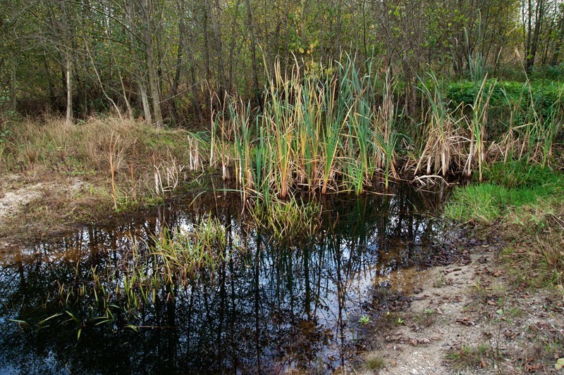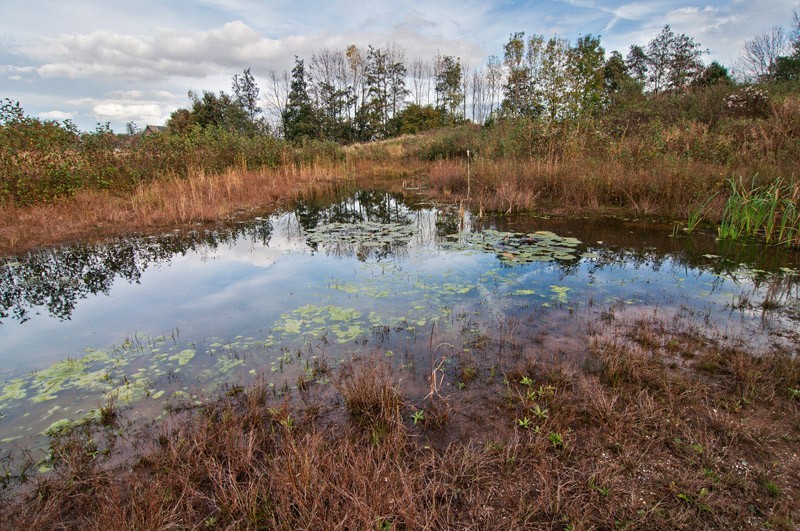 We komen hier wel vaker en iedere keer ziet het er weer anders uit. Je vind er er een paar watertjes, de ene keer staat er iets meer water in, de andere keer ietsje minder. In die waterpartijen zie je ook vaak de mooiste kleuren, van groen tot bruin en rood, dat ligt weer aan het tijdstip in het jaar. Het terrein is er bovendien mooi glooiend. Wij genieten er altijd weer enorm. Het is natuurlijk wel zo, mocht je hier gaan willen wandelen en dat geldt voor het hele gebied, zowel het Vossenbroek-west en oost en het Elzenbroekbos, doe voorzichtig aan, want hier leeft ook wild.